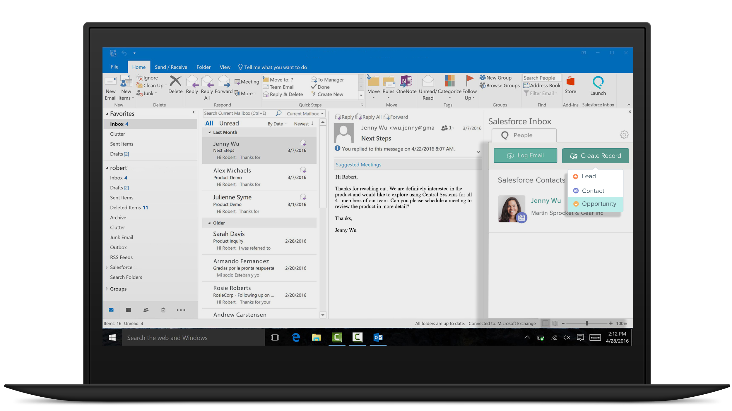 You have a new email from an interested customer. Open Salesforce Inbox to see if there are any existing opportunities.