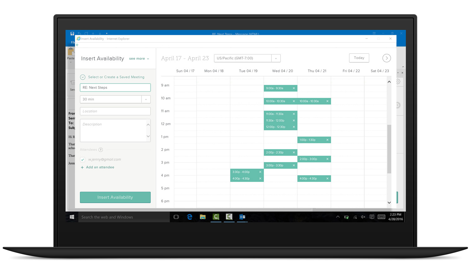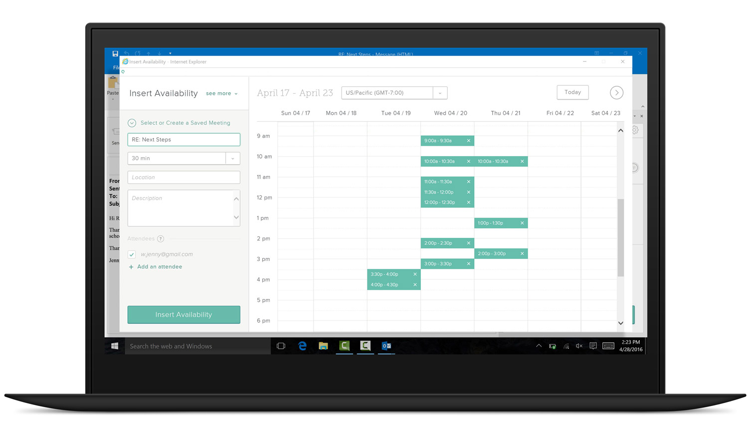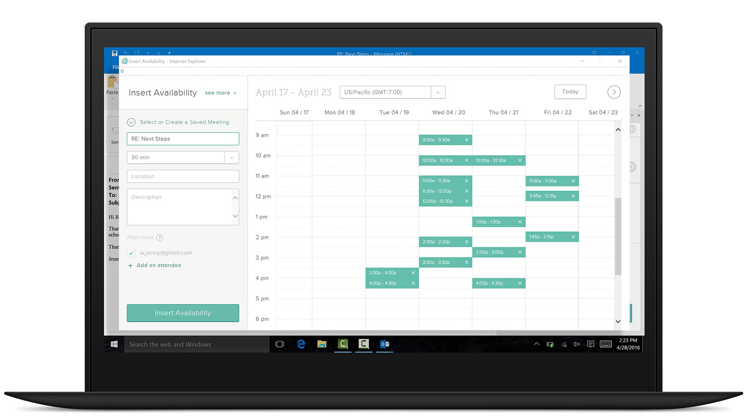 Automatically insert your availability to schedule a meeting in just one email. Spend less time coordinating and more time selling.